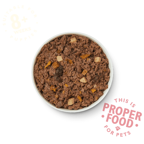 Made with lots of freshly prepared turkey and duck, we’ve also included wholesome fruit and veg for extra nourishment. Sweet potato and pumpkin are great sources of carbohydrate that will keep your puppy sustained and full of energy, while salmon oil provides the natural omegas 3 & 6 that help with growth and development.